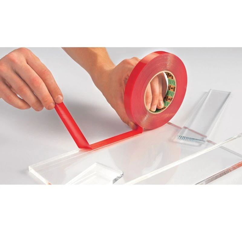 - Collage de verre et de plastiques transparents pour une fixation invisible, dans les secteurs suivants : vitrage, signalétique, présentoirs, ascenseurs