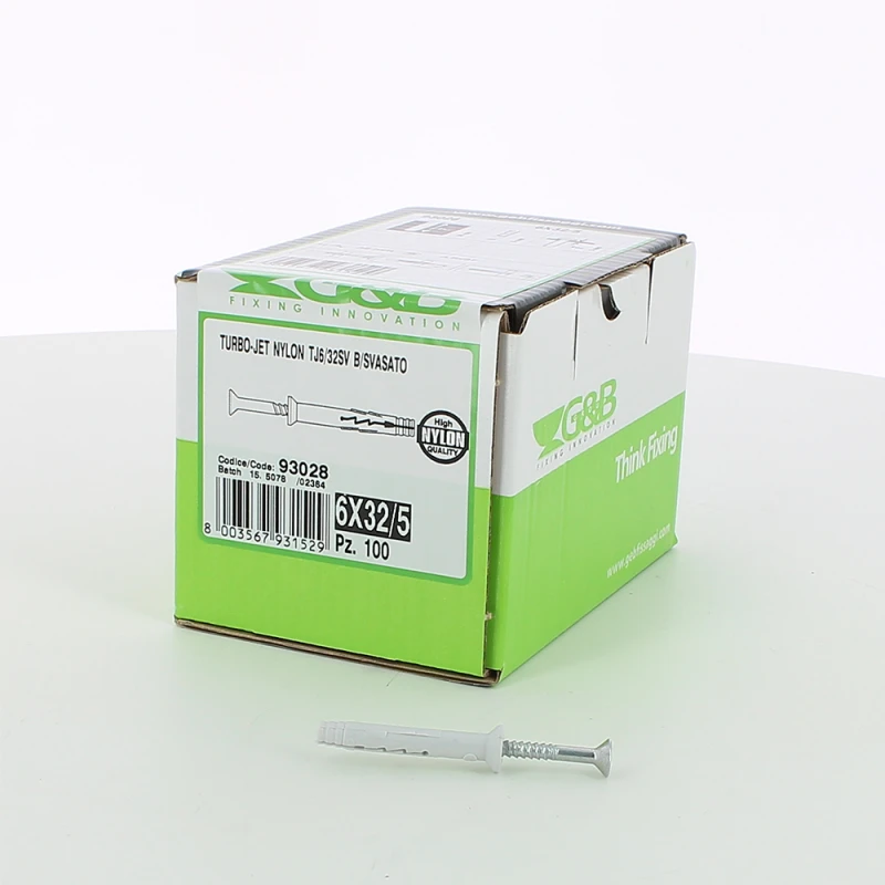 Les chevilles à frapper Turbo-jet en nylon de 6 mm de diamètre sont idéales pour la fixation de cadre. La conception exclusive de ces chevilles augmente les performances des connecteurs en nylon TURBO grâce à l’amélioration du système d’expansion traditionnel basé sur la percussion par la vis de clou.