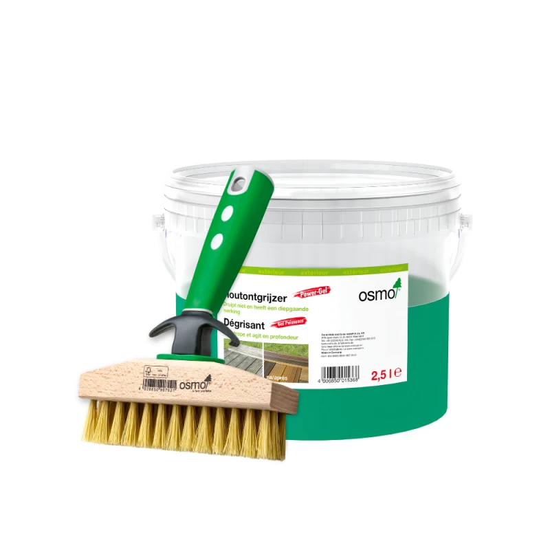Le gel dégrisant Osmo est particulièrement recommandé pour les terrasses en bois, les façades en bois, les meubles de jardin et autres surfaces du même type.