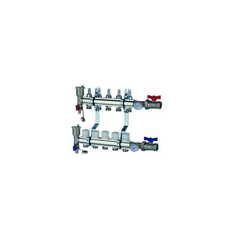Nourrice 2, 3, 4, 5 ou 6 voies pour plancher chauffant sec mince toute équipée et en inox.