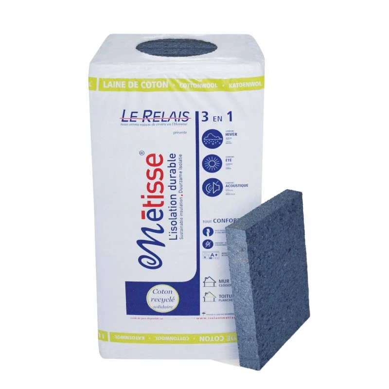 Les panneaux Métisse M+ offre le meilleur compromis entre confort d’hiver et d’été, confort acoustique et confort de pose. Convient à toutes les applications: murs, sous-toitures, combles, parquets, contre-cloisons et cloisons de distribution. ATEX favorable du CSTB (Appréciation Technique Expérimentale n°1626 du 24/10/08).