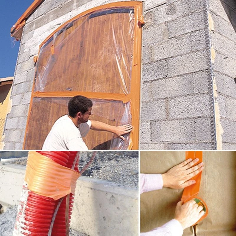 Le ruban adhésif PVC 6095 orange pour le bâtiment est multi-usages, enduit d’une masse adhésive caoutchouc.