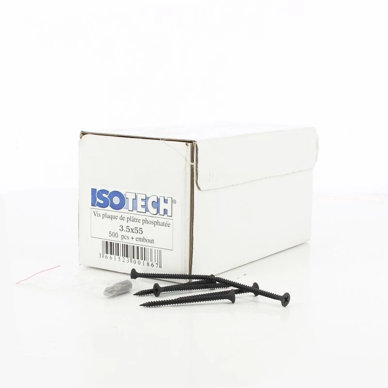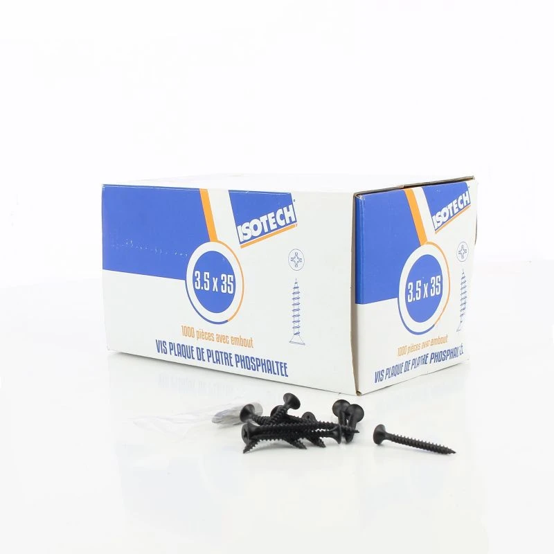 Vis TTPC autoperceuse à tête trompette et pointe clou en acier phosphaté pour la fixation de plaques de plâtre sur ossature métallique jusqu’à 0.8 mm d’épaisseur maximum.