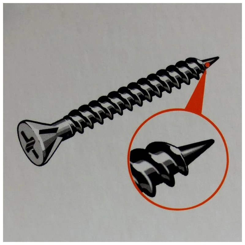 - Facilité de vissage : la géométrie optimisée du filetage assure une pénétration rapide de la vis et garantit un maintien parfait dans l’ossature